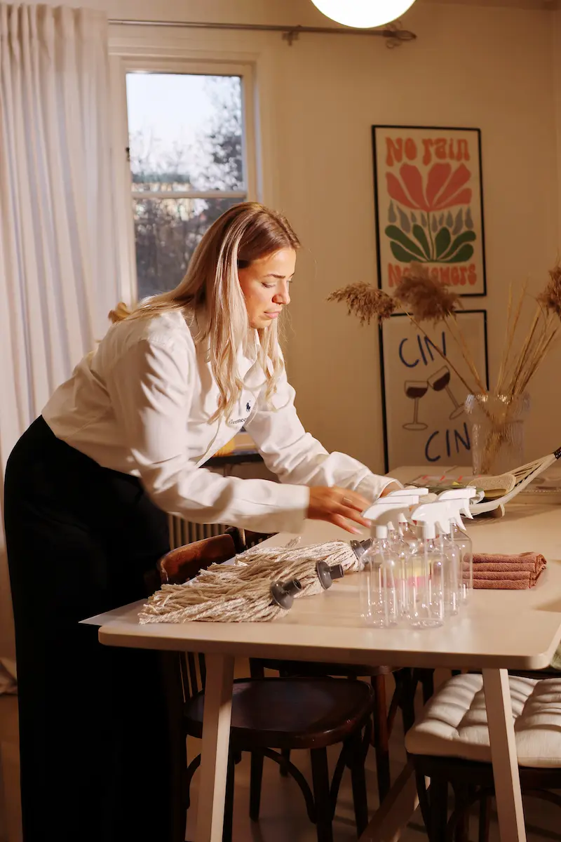 Hela deconcept är baserat och genomsyrat med tanken på hållbarhet. Detta visar sig från användning av miljövänliga städprodukter och vår second-hand jobbkläder till transportmedel som cykel om vädret tillåter.